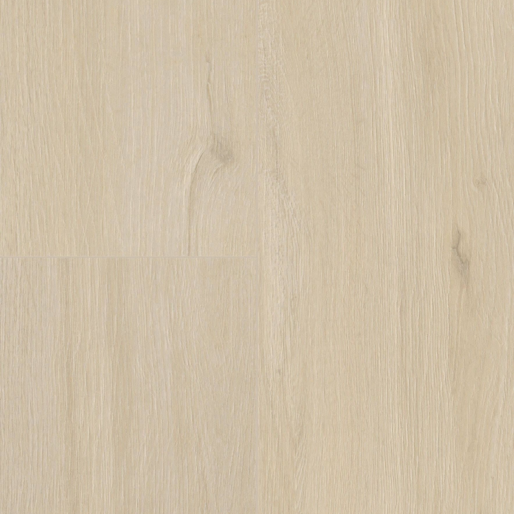 Декор выполнен в формате длинной широкой доски с использованием синхронного тиснения, которое отлично воспроизводит структуру натуральной древесины в бежевых оттенках. Доска крупного формата имеет влагозащищенную фаску по четырем сторонам с лаковым покрытием в цвет декора. Фаски имеют глубину 1,5 мм и визуально расширяют пространство любых помещений.