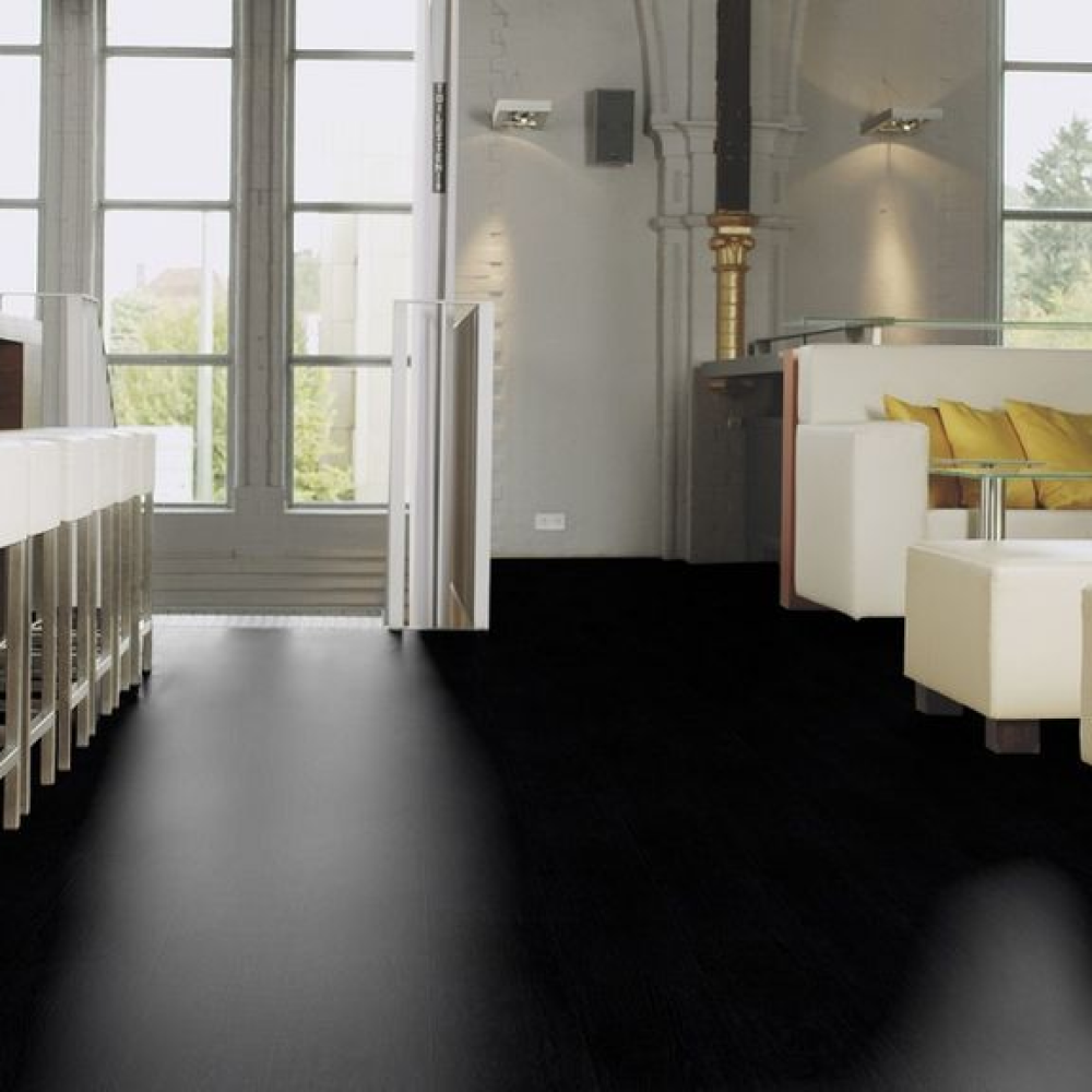 Декор выполнен с использованием синхронного тиснения, которое отлично воспроизводит структуру натуральной древесины в черных оттенках. Планка имеет влагозащищенную фаску по четырем сторонам с лаковым покрытием в цвет декора. Фаски имеют глубину 1,5 мм и визуально расширяют пространство любых помещений.