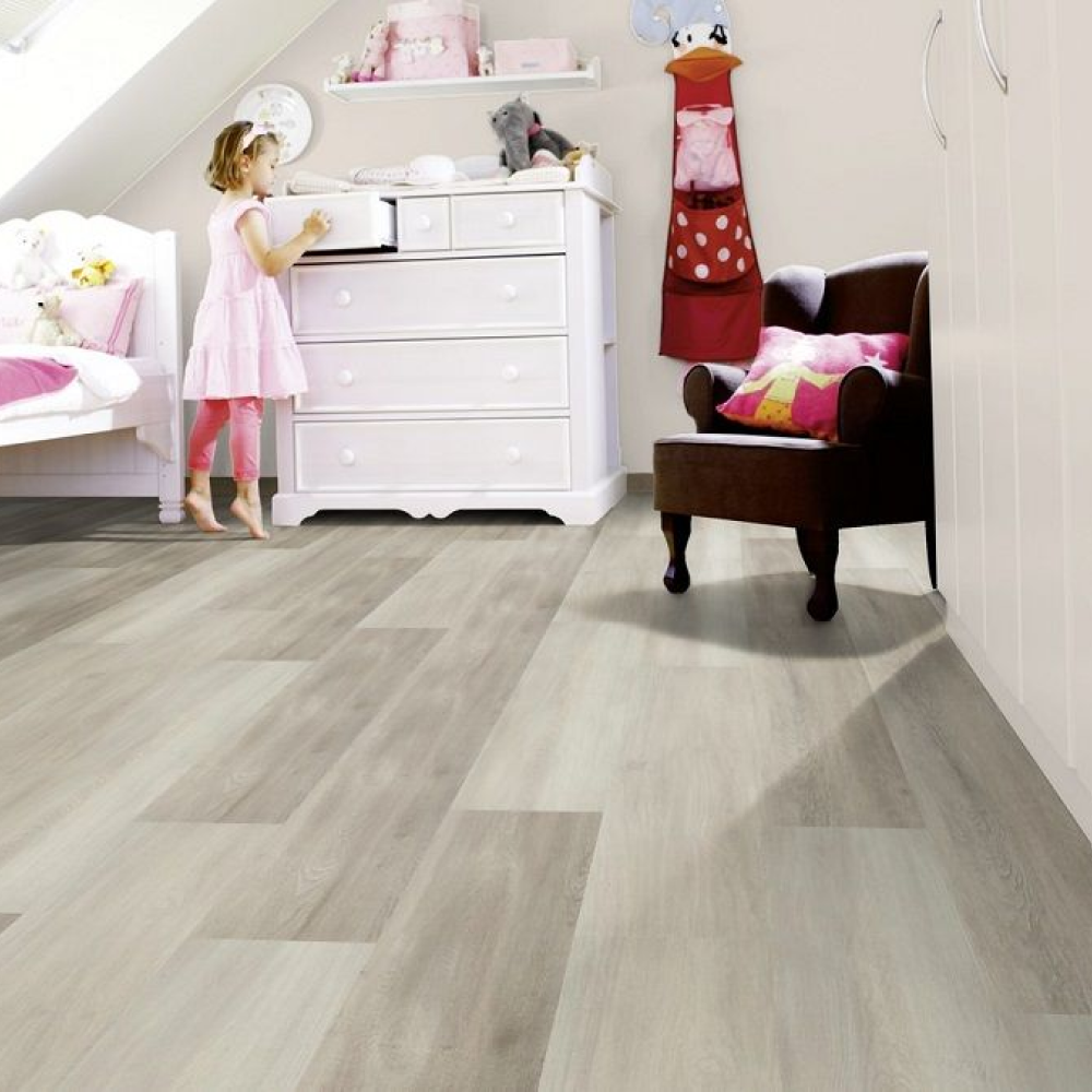 Виниловый пол Wineo Eternity Oak Grey DB00121 — стильный декор в светло-серых оттенках дуба. Высокие показатели износостойкости и водостойкости позволяют укладывать полы в помещениях с постоянным потоком людей. К таким помещениям можно отнести рестораны, гостиничные комплексы, а также магазины и спортивные центры.