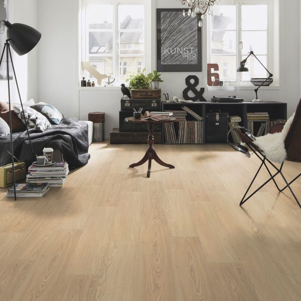 Виниловый пол очень легко поддерживать в чистоте, ведь благодаря герметичному слою, поверхность пригодна и для сухой и для влажной уборки.