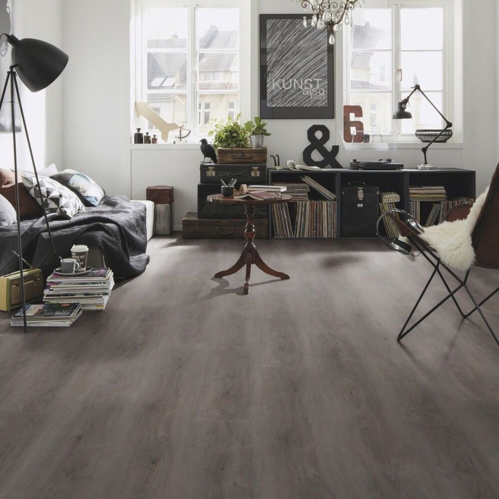 Виниловый пол Wineo 600 Wood XL BerlinLoft DB200W6 — высококачественный декор в темно-серых оттенках дуба крупного формата. Высокие показатели износостойкости и водостойкости позволяют укладывать полы в помещениях с постоянным потоком людей.