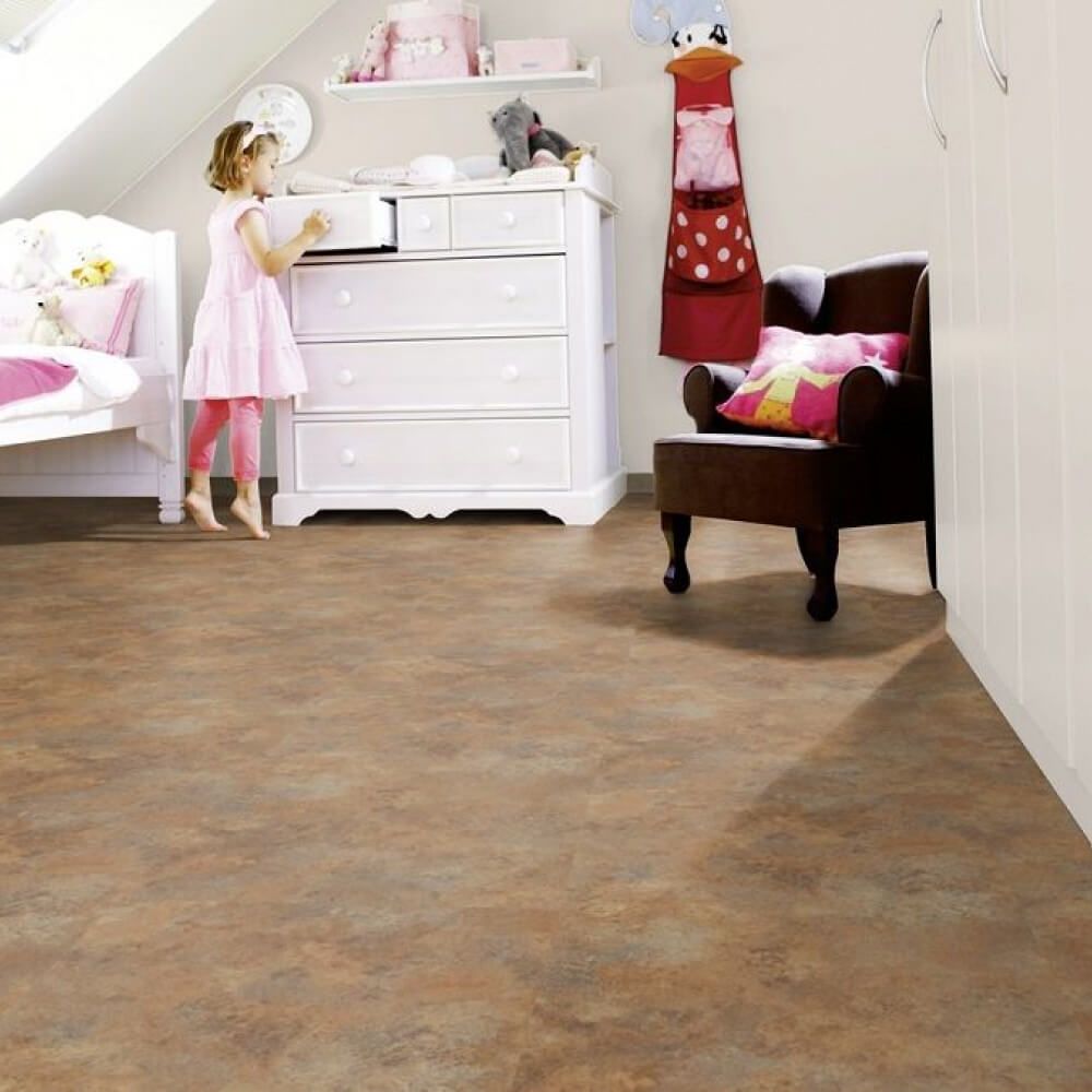 Виниловый пол 800 Stone Copper Slate DLC00091 — стильный декор под плитку с медно-коричневым оттенком и рельефным воспроизведением фактуры камня с микрофаской по периметру.
