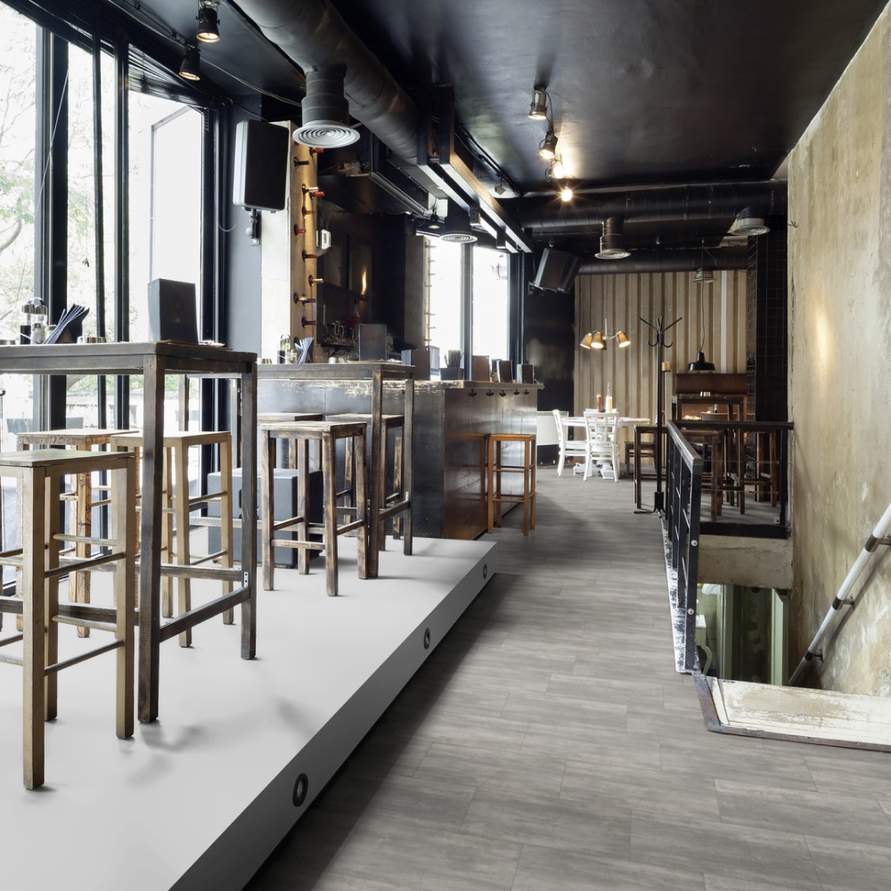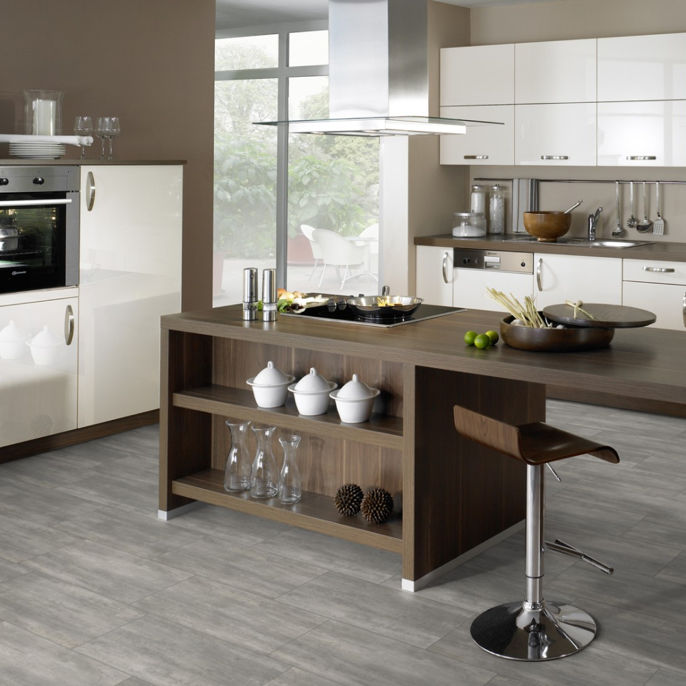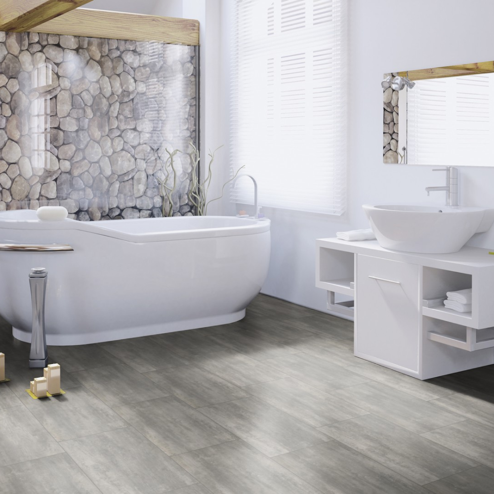Виниловый пол Wineo Courage Stone Grey DLC00137 — стильный декор под плитку в светло-серых оттенках. Высокие показатели износостойкости и водостойкости позволяют укладывать полы в помещениях с постоянным потоком людей. К таким помещениям можно отнести рестораны, гостиничные комплексы, а также магазины и спортивные центры.