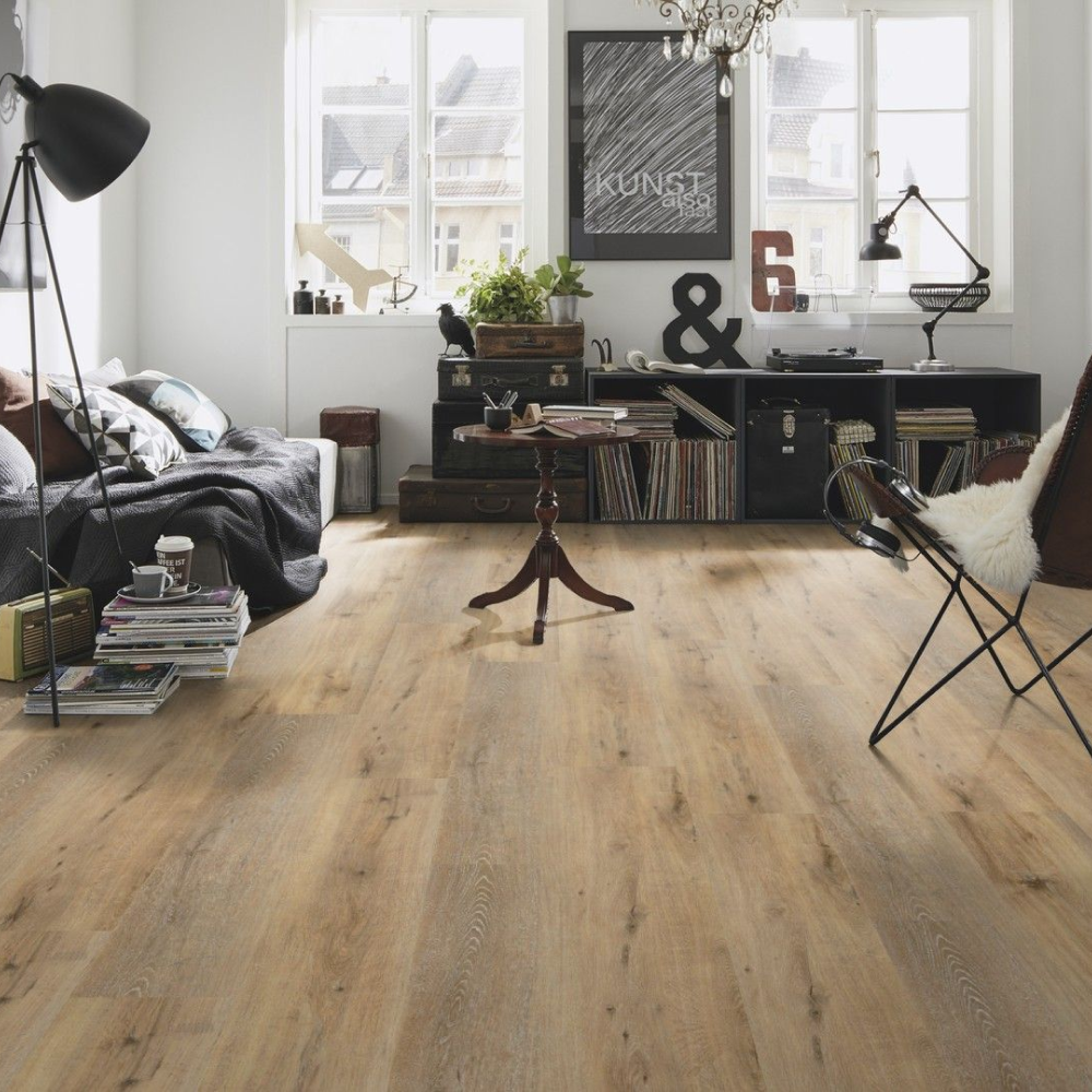 Виниловый пол очень легко поддерживать в чистоте, ведь благодаря герметичному слою, поверхность пригодна и для сухой и для влажной уборки.