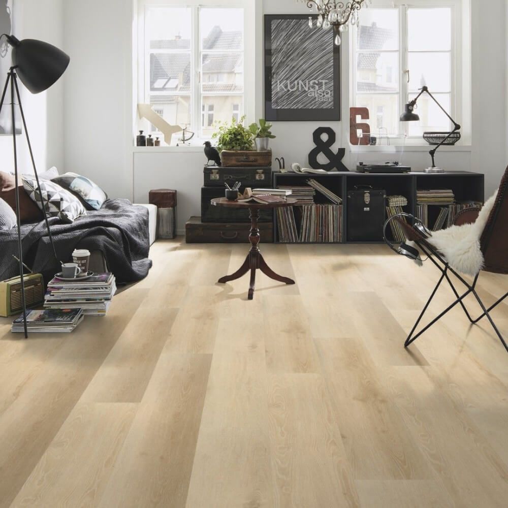 Виниловый пол Wineo 600 Wood XL BarcelonaLoft RLC191W6 — высококачественный декор в бежевых оттенках дуба крупного формата. Высокие показатели износостойкости и водостойкости позволяют укладывать полы в помещениях с постоянным потоком людей.
